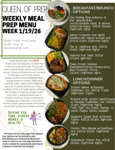 Enjoy 10% off monthly meal prep packages- use code :monthlyprep